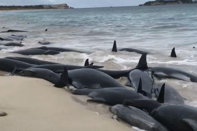Grupul de balene pilot cu înotătoarea scurtă a eşuat pe plaja Golfului Hamelin, în apropierea oraşului Augusta, la 315 kilometri sud de Perth.