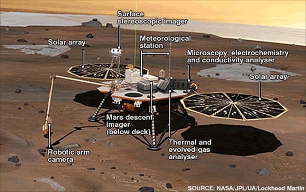 Phoenix a aterizat pe solul planetei Marte în luna mai. Cele cinci luni ale misiunii au depăşit cele 90 de zile la care se aşteptau cercetătorii iniţial, în această perioad fiind transmise numeroase date valoroase, care au permis, printre altele, confirmarea prezenţei apei îngheţate la polii planetei roşii. Phoenix s-a luptat în toată această perioadă cu temperaturile scăzute şi cu întunericul unei ierni avansate.