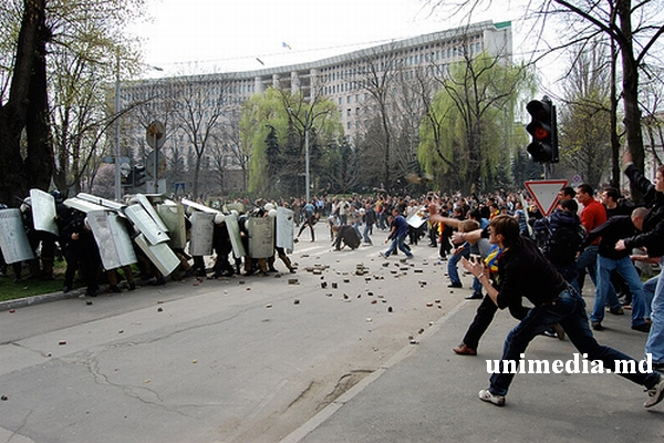 Manifestanţii adunaţi în Piaţa Marii Adunări Naţionale scandează lozinci anticomuniste şi împotriva preşedintelui ţării. La protest s-au alăturat şi mai mulţi politicieni, printre care Chiril Lucinschi şi Oazu Nanţoi de la Partidul Democrat din Republica Moldova (PDM), Mihai Godea, Călin Vieru şi Iurie Leancă, din cadrul Partidului Liberal Democrat din R. Moldova (PLDM).