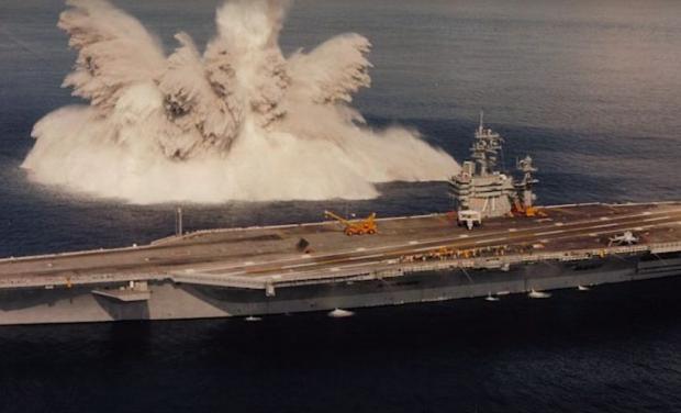 În imediata apropiere noului portavion a fost detonată o foarte puternică încărcătură de explozibil, care a provocat o undă de șoc echivalentă cu cea a unui cutremur cu magnitudinea de 3.9 grade pe scara Richter.
