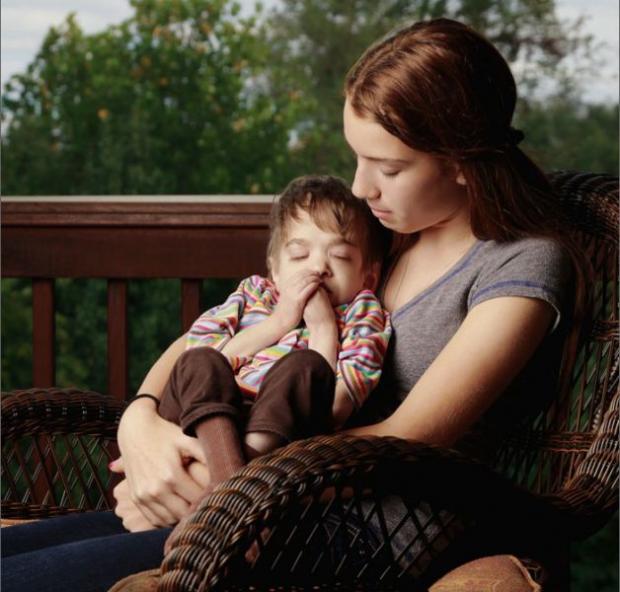 Însă această imagine nu spune povestea unei mame şi a fiicei sale, ci povestea a două surori. "Copilul" care este ţinut în braţe are 19 ani şi este sora mai mare, iar cea care o copleşeşte cu dragostea ei, este sora mai mică, care are numai 17 ani.