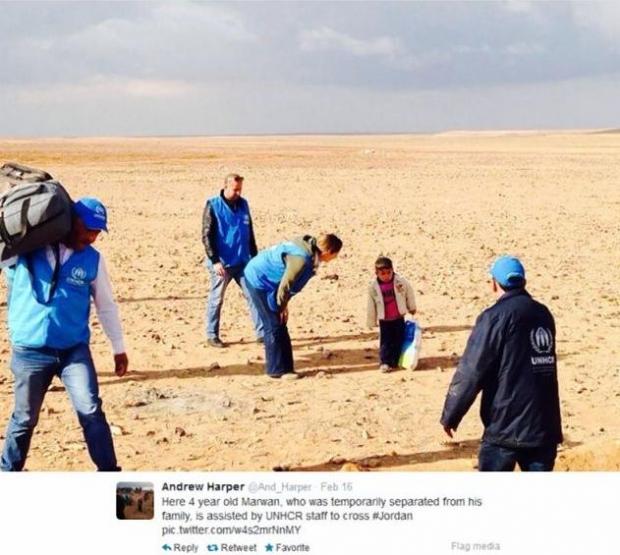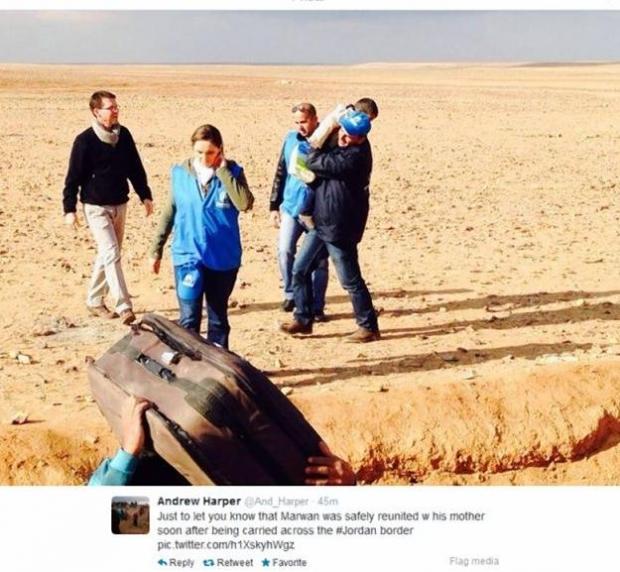 Copilul a fost găsit de o echipă a Agenţiei ONU pentru refugiaţi care l-a şi preluat. Era vizibil afectat de tot ceea ce i s-a întâmplat şi avea la el o pungă de plastic.