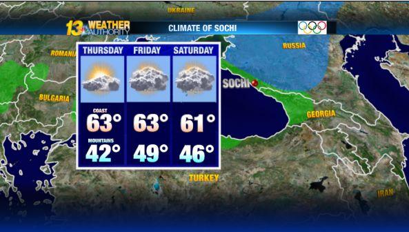 În acelaşi timp, pentru sportivii care concurează la Soci temperaturile crescute nu aduc veşti bune. Zăpada de pe pârtii se topeşte în timpul zilei şi îngheaţă la loc peste noapte, ceea ce favorizează formarea gheţii.
