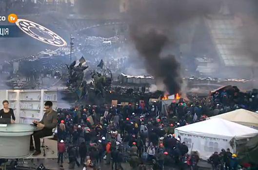 Corturile manifestanţilor, în care aceştia dormeau, au fost incendiate pe rând, iar Euromaidanul a fost cuprins de flăcări.