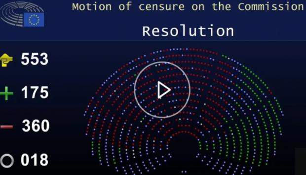Moțiunea de cenzură inițiată de eurodeputatul român Gheorghe Piperea (AUR) a fost respinsă joi, la Strasbourg, cu o largă majoritate de Parlamentul European, cu voturi 360 de voturi împotrivă, 175 de voturi pentru și 18 abțineri.