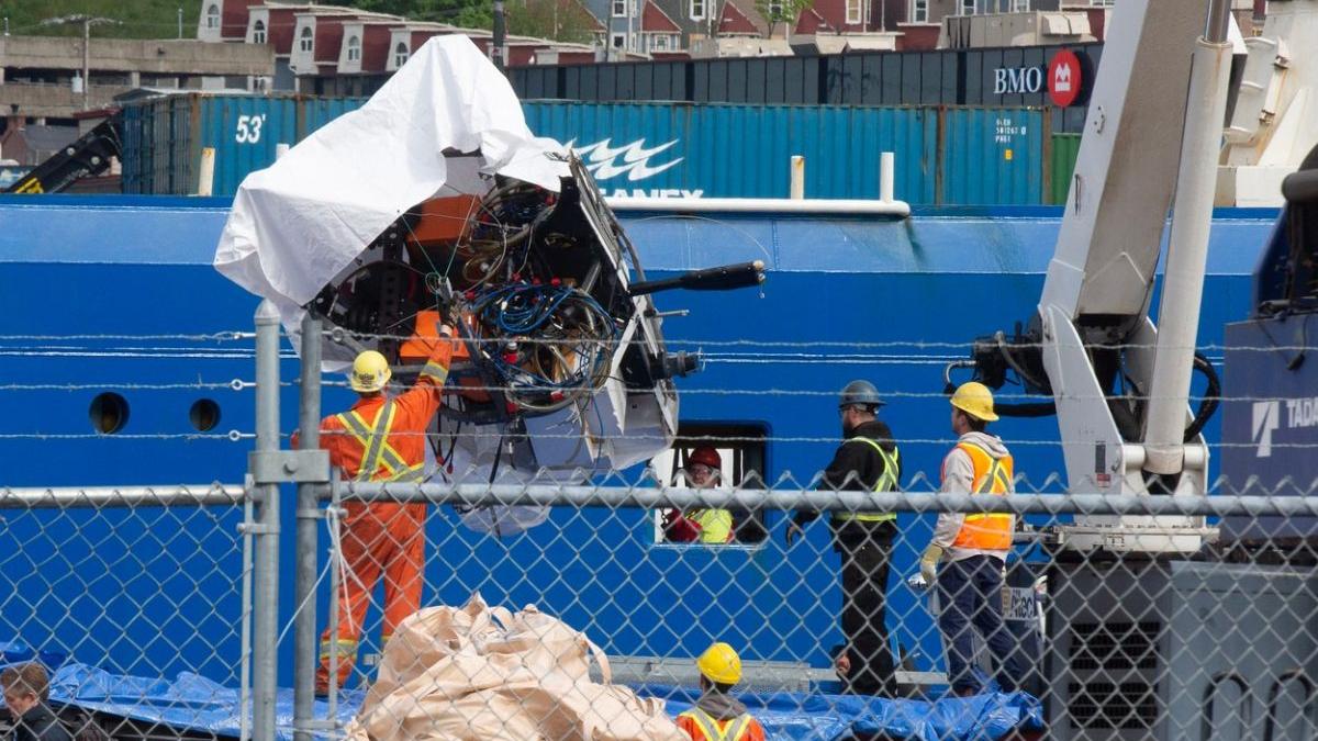 Resturile metalice ale submersibilului Titan au fost descărcate de pe nava Horizon Arctic din St John's, Canada, miercuri.