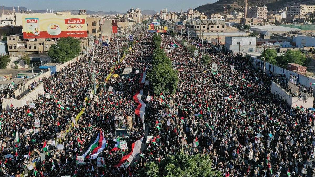 Zeci de mii, poate sute de mii de oameni au venit în au ieșit în stradă, inclusiv în capitala Sana'a, în care este controlată de milițiile pro-iraniene și şiite Houthi  pentru a protesta față de intervenția israeliană asupra Fâșiei Gaza.