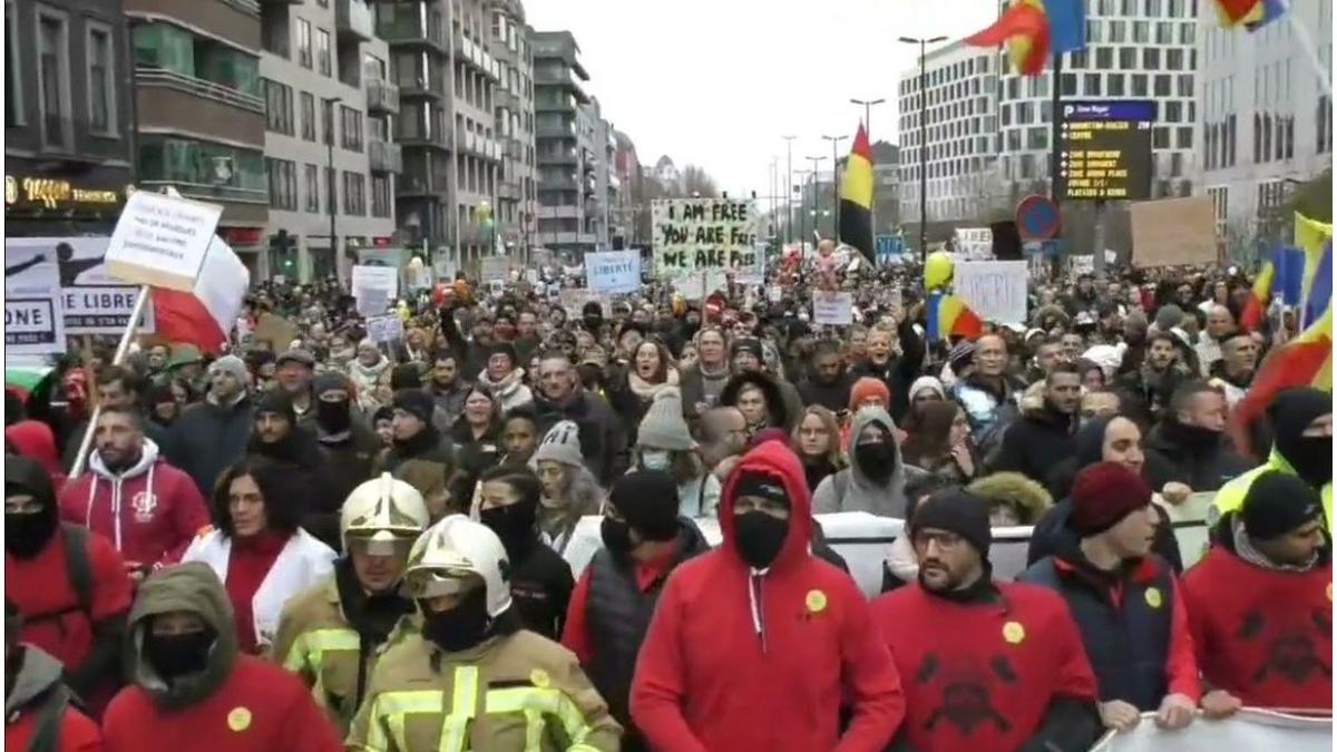Se scandează mesaje anti-vaccinare și anti-certificat verde. Manifestația a început în jurul orei 13.00 la gara de Nord din Bruxelles, și este atent supravegheată de jandarmi.