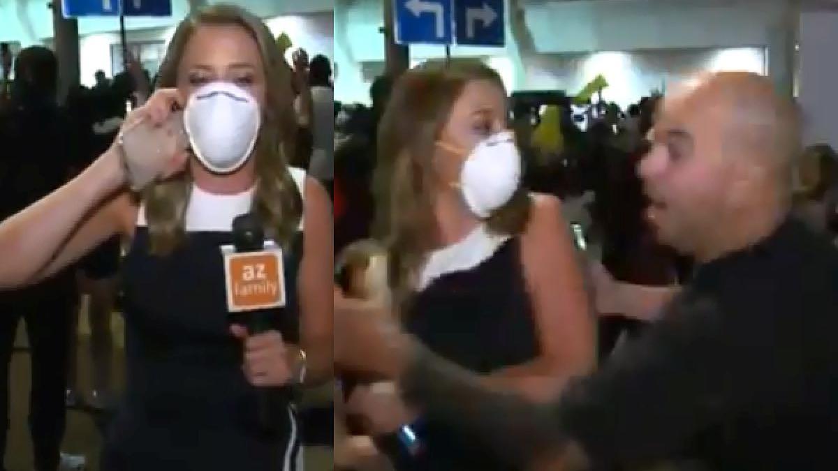 „Acesta este momentul în care am fost atacată în mod intenționat de acest bărbat în timp ce eram în direct încercând să raportez ce se întâmplă în timpul protestului de la Phoenix.