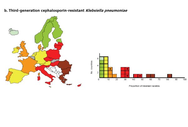 Printre bacteriile cele mai rezistente se numără Klebsiella, răspunzătoare pentru infecţiile urinare sau pneumonie, care, în peste 50% din cazuri nu mai poate fi tratată cu antibioticele obişnuite, cefalospoinele, la pacienţii români.