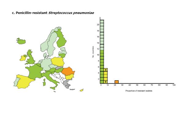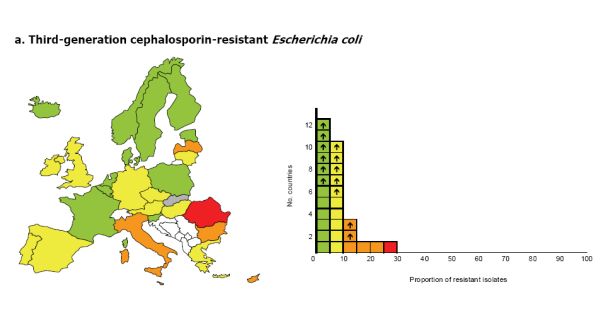 În România, baccilul E. coli, care produce infecţii digestive, este rezistent în proporţie de 30% la cefalosporine, potrivit raportului, iar streptococul nu mai poate fi tratat cu penicilină, ca pe vremuri, în peste 20% din cazuri.