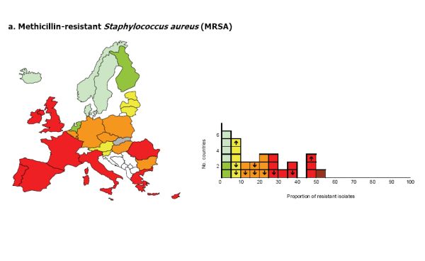 În cazul Stafilococului auriu, responsabil de bronşite, faringite sau chiar toxinfecţii alimentare, situaţia este şi mai gravă. Meticilina, antibioticul obişnuit folosit în tratarea acestor boli, nu mai dă rezultate în peste 50% din cazuri, iar procentul este în urcare, după cum arată raportul.