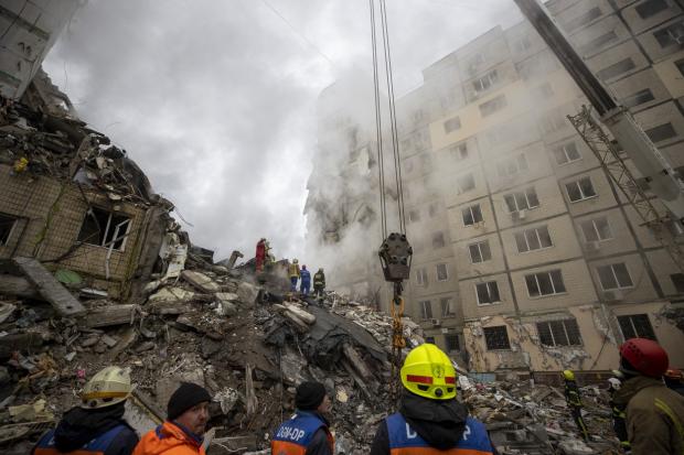 Echipele de salvare lucrează de sîmbătă la temperaturi negative pentru a găsi supraviețuitori printre dărâmăturile clădirii cu nouă etaje. Blocul este în mare parte distrus, iar de sub dărâmături încă se mai aud țipete.