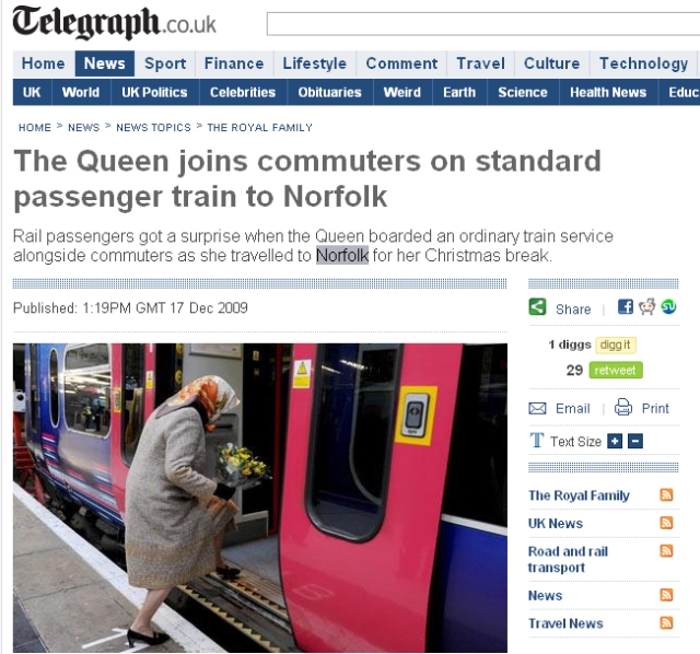 Nu este prima oară când Regina alege un tren obişnuit pentru călătoriile sale, în locul celui regal. Chiar luna trecută a călătorit cu trenul în Cambridgeshire, iar în 2007 a folosit serviciile căilor ferate britanice pentru a ajunge în Milton Keynes.