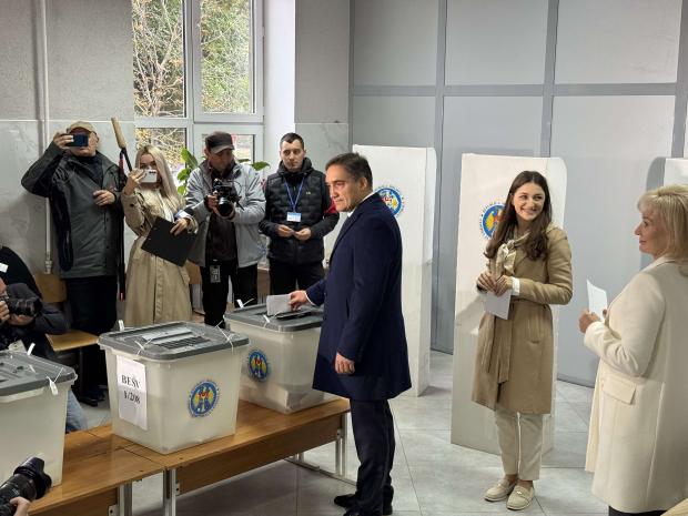 Primul a votat candidatul socialiștilor, Alexandr Stoianoglo. Fotul procuror, devenit candidat independent susținut de PSRM, partidul fostului președinte Igor Dodon, a venit la secție însoțit de soție și copii. După vot, Stoianoglo a îndemnat la boicotarea referendumului, spunând că a luat un singur buletin, cel pentru prezidențiale. A explicat că dacă va fi președinte va colabora și cu Europa, și cu Rusia, SUA sau China.