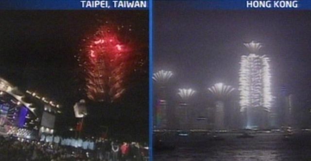 Taiwanezii şi locuitorii din Hong Kong au trecut şi ei în 2010. Antena 3 a transmis in direct imagini cu focul de artificii, dar şi cu cea mai mare clădire din lume, turnul Taipei 101, o clădire de birouri înaltă de 500 de metri. Autorităţile taiwaneze organizează în fiecare an unele dintre cele mai impresionante focuri de artificii din lumea întreagă.