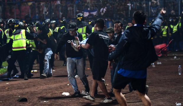 Suporterii echipei gazdă Arema FC care pierdea în fața rivalei Persebaya Surabaya au invadat terenul de fotbal sâmbătă seara, iar polițiștii au tras cu gaze lacrimogene în încercarea de a controla situația, a declarat reporterilor șeful poliției din Java de Est, Nico Afinta.