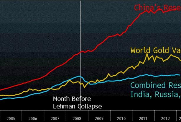 Activele din rezervele Chinei reprezintă 30,2% din cele la nivel global, faţă de 14% în 2004, arată datele Bloomberg. Totalul Chinei este de trei ori mai mare faţă de Japonia, situată pe locul doi în lume. În 2004, Japonia controla circa 24% din rezervele la nivel mondial.