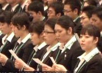Doar unul din cinci studenţi japonezi îşi poate găsi de lucru imediat după absolvire. Pentru cei care au acest noroc, prima zi de muncă este o adevărată sărbătoare.