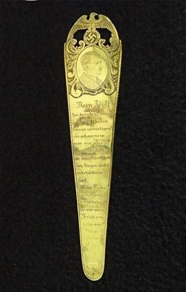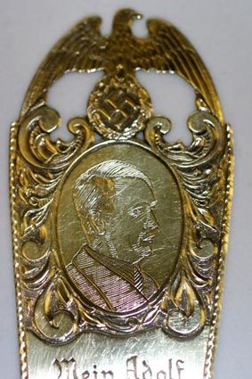 Potrivit Seattle Times, semnul de carte a fost furat în 2002 din Spania înainte de a fi vândut în cadrul unei licitaţii. Gravat cu portretul lui Hitler, cât şi cu un vultur imperial şi cu svastica, i-a fost făcut cadou acestuia în 1943 de către iubita sa, Eva Braun, drept consolare pentru înfrângerea armatei germane la Stalingrad. Potrivit autorităţilor americane, el poartă inscripţia ?Dragul meu Adolf, nu te nelinişti, (înfrângerea) nu este un risc care nu va distruge certitudinea victoriei noastre". Obiectul ar fi aparţinut apoi familiei lui Wilhem Keitel, comandantul armatei naziste, executat în urma proceselor de la Nürnberg.
