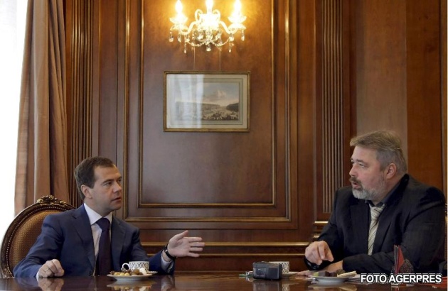 Medvedev, în timpul interviului pentru Novaya Gazeta, alături de redactorul şef al publicaţiei.