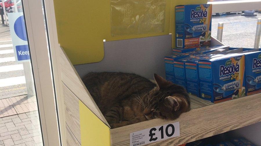 Un bărbat a văzut o pisică dormind chiar pe rafturile unui supermarket Tesco și a decis să împărtășească situația amuzantă cu prietenii din online.