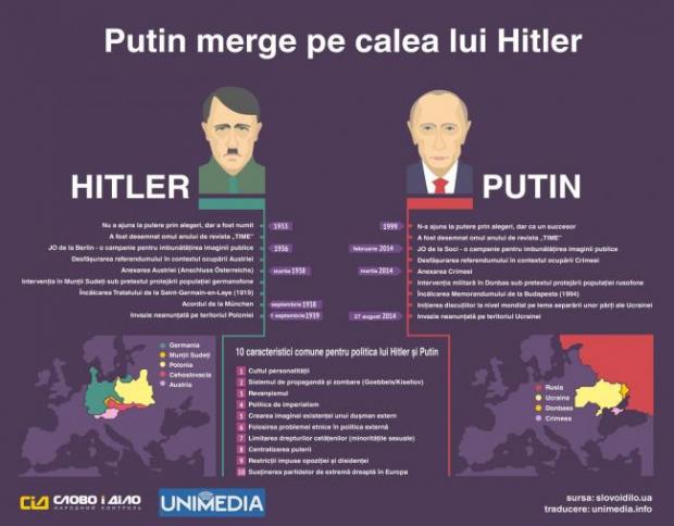 Potrivit jurnaliştilor ucraineni, sunt zece caracteristici comune pentru politica lui Hitler şi Putin: