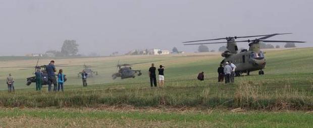 Americanii le-au permis, binevoitori, localnicilor să se fotografieze cu elicopterele, să urce la bord şi chiar să viziteze postul de pilotaj. După două ore, vremea s-a ameliorat iar aeronavele şi-au luat zborul.