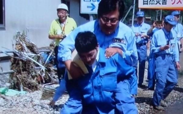 La 1 septembrie, Shunsuke Mutai, ministru adjunct pentru reconstrucţii, a vizitat oraşul Iwaizumi, unde au murit nouă persoane în vârstă dintr-un centru de îngrijire. Dar pentru că a uitat să-şi ia cizme, un funcţionar al guvernului l-a cărat în spate pentru a evita bălţile. Criticile nu au întârziat să apară, după ce imaginile au fost transmise de un post de televiziune.