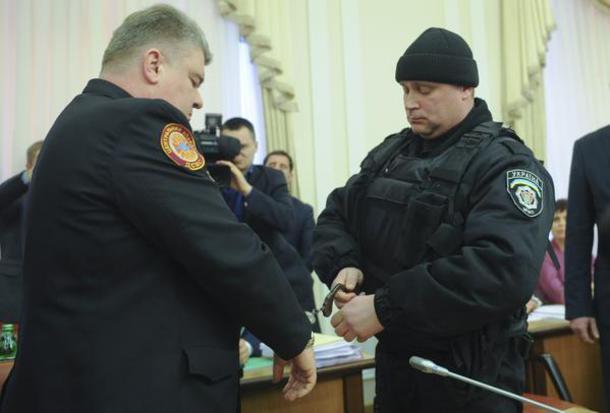 Potrivit imaginilor care au fost postate pe YouTube, şeful Serviciului de Stat pentru Situaţii de Urgenţă, Serhiy Bochkovsky, şi adjunctul său, Vasyl Stoyetsky, au fost încătuşaţi în faţa camerelor de filmat.