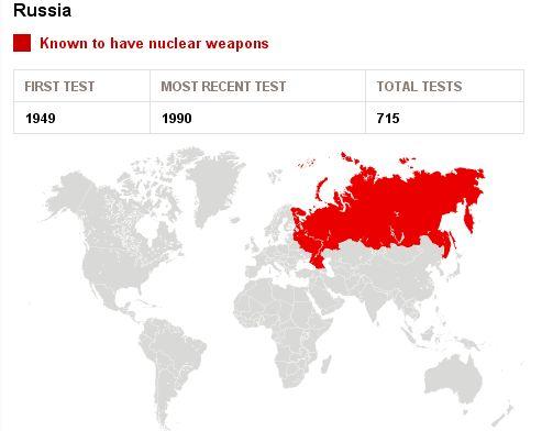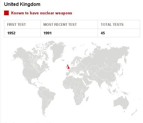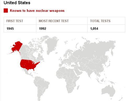 SUA – Americanii au efectuat mai multe teste nucleare decât celelalte puteri nucleare la un loc şi reprezintă singurul stat care a utilizat o armă nucleară în luptă. Statele Unite sunt singura putere mondială care a desfăşurat arme în alte state. Prin intermediul programului NATO, americanii au trimis bombe în Belgia, Germania, Italia, Olanda şi Turcia.