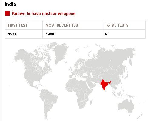 India are aparate de zbor şi rachete capabile să transporte încărcături nucleare. Dispune de cel mult 100 de focoase, dintre care nici unul nu este operaţional.