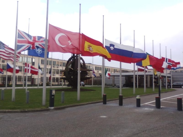 Imaginile au fost realizate şi trimise de locotenent-colonelul în Statul Major Internaţional al NATO în Bruxelles, Adrian Petrică. Potrivit acestuia, steagurile din faţa sediului NATO au fost coborâte la jumătatea catargului (în bernă) ca omagiu pentru tragedia aviatică a aeronavei prezidenţiale.