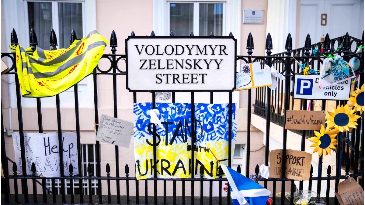 Panouri cu noul nume – strada Volodimir Zelenski – au fost puse în fața consulatului ucrainean de pe strada Windsor din Marea Britanie.