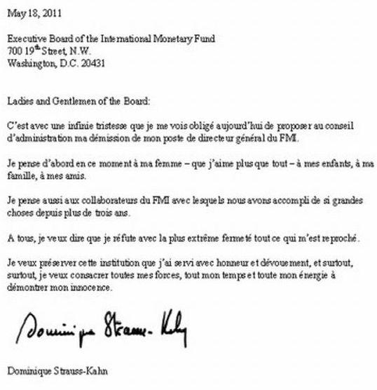 CITEŞTE SCRISOAREA PRIN CARE DSK ŞI-A DAT DEMISIA: