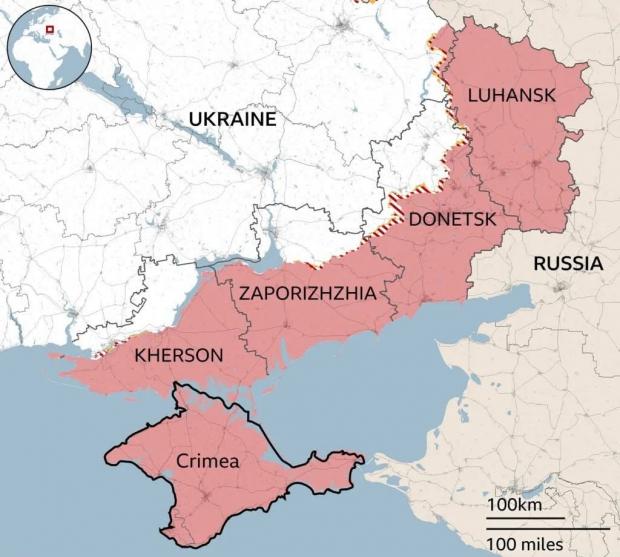 Rusia a ocupat părți din Ucraina de la anexarea ilegală a Crimeii în 2014 și deține zone întinse din est.