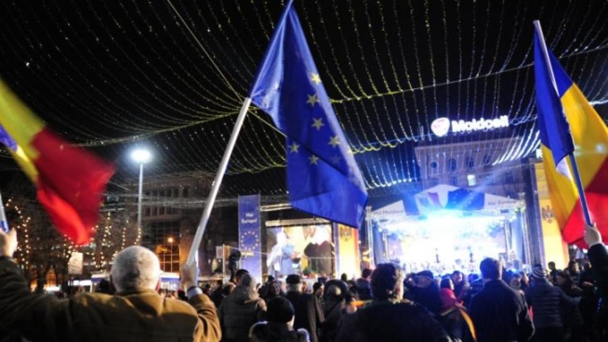 Sute de cetăţeni moldoveni au mărşăluit pentru unirea cu România, duminică, la Chişinău, de Ziua Naţională a României, conform Mediafax.