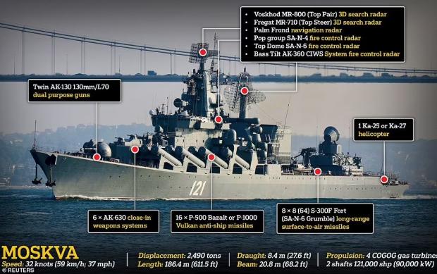 Numit inițial "Slava" și rebotezat "Moskva", acest vas de război - despre care relatările ucrainenilor și ale rușilor converg asupra unui singur aspect, avarierea gravă în urma unei explozii - a devenit nava amiral a Flotei ruse la Marea Neagră în anul 2000.