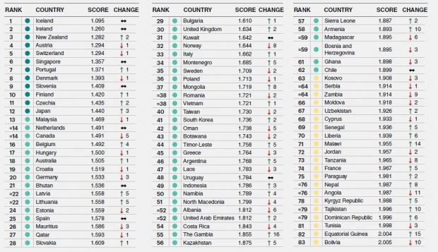 Cât privește țările clasate în fruntea clasamentului, acestea și-au păstrat în mare parte timp de aproape două decenii pozițiile, fapt ce indică stabilitatea pe termen lung, generată de politicile pașnice.