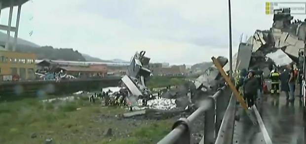Podul Morandi s-a prăbuşit marţi în timpul unei furtuni, mai mult de 30 de maşini căzând în gol de la o înălţime de 45 de metri.