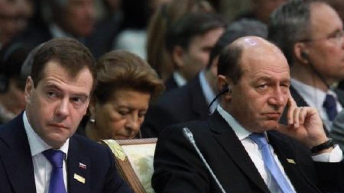 La summitul OSCE, Preşedintele Traian Băsescu a reuşit, printre picături, să se întreţină cu omologul său rus, Dmitri Medvedev. Cei doi au discutat preţ de câteva zeci de secunde.