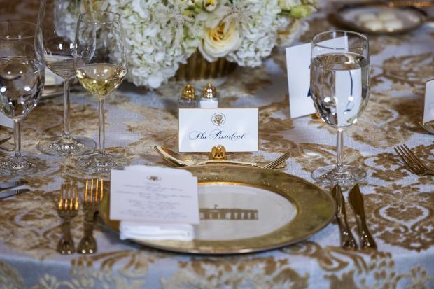 Cina a fost promovată sub titulatura „Magnifica Sală de Bal a Casei Albe”, potrivit unei invitații consultate de The Wall Street Journal. Documentul, scris în fontul auriu caracteristic lui Trump, îl prezenta pe președinte drept gazda evenimentului.