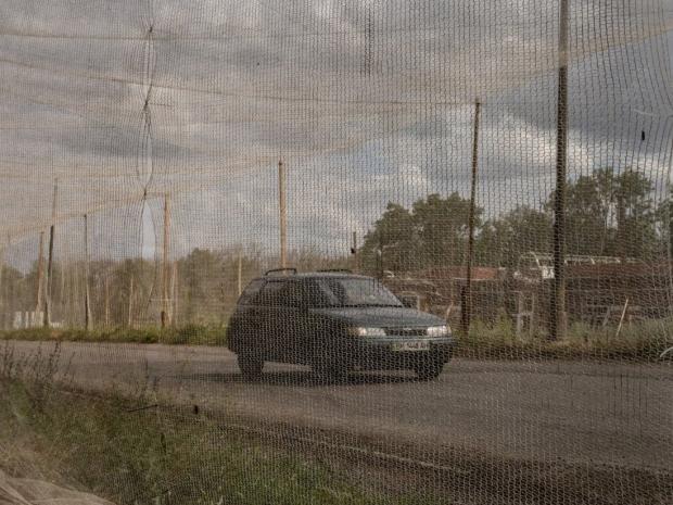 Agățate de stâlpi de-a lungul drumului, plasele oferă o anumită protecție soldaților Kievului, deoarece dispozitivele explozive aeropurtate rămân prinse în firele rezistente.
