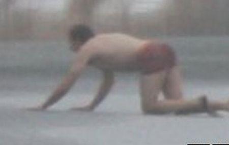 Potrivit unui martor ocular, bărbatul a căzut în râu, dar a reuşit, în cele din urmă, să iasă din apă împreună cu patrupedul.