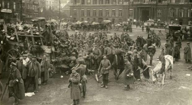 Invadarea Belgiei, la 4 august 1914, a declanşat ostilităţile din Primul Război Mondial. Germania a încălcat neutralitatea micului regat pentru a prinde la mijloc trupele franceze, iar acest act a fost urmat imediat de intrarea în război a Marii Britanii.