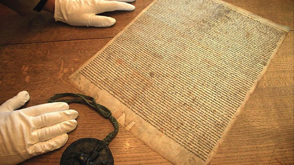 Prima Magna Carta a fost schiţată de Arhiepiscopul de Canterbury şi aprobată de regele John of England pe 15 iunie 1215, cu scopul de a încheia pacea cu un grup de baroni rebeli. Magna Carta a fost rescrisă şi invocată de mai multe ori în anii ce au urmat.