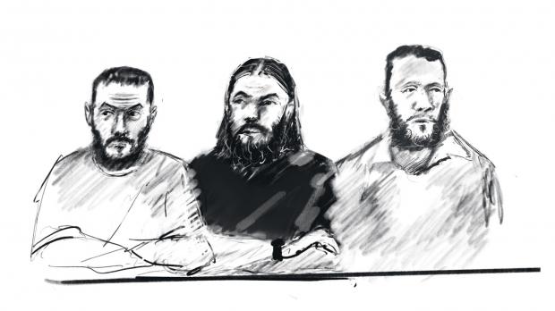 Krayem (portretizat în desenul de mai jos, în centrul imaginii) este acuzat de crime de război cu circumstanțe agravate şi terorism.