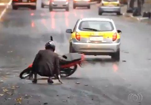 O porțiune dintr-un bulevard intens circulat a fost acoperită cu fructele unui arbore tropical, care în combinație cu asfaltul ud au făcut ca suprafața de rulare să fie extrem de alunecoasă.