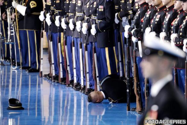 Un membru al Gărzii de Onoare a armatei americane a leșinat în timpul discursului de rămas-bun al lui Barack Obama.
