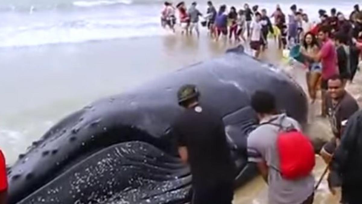 Un pui de balenă a eșuat pe o plajă din Brazilia. Sute de oameni s-au mobilizat să salveze mamiferul ajuns pe nisip.